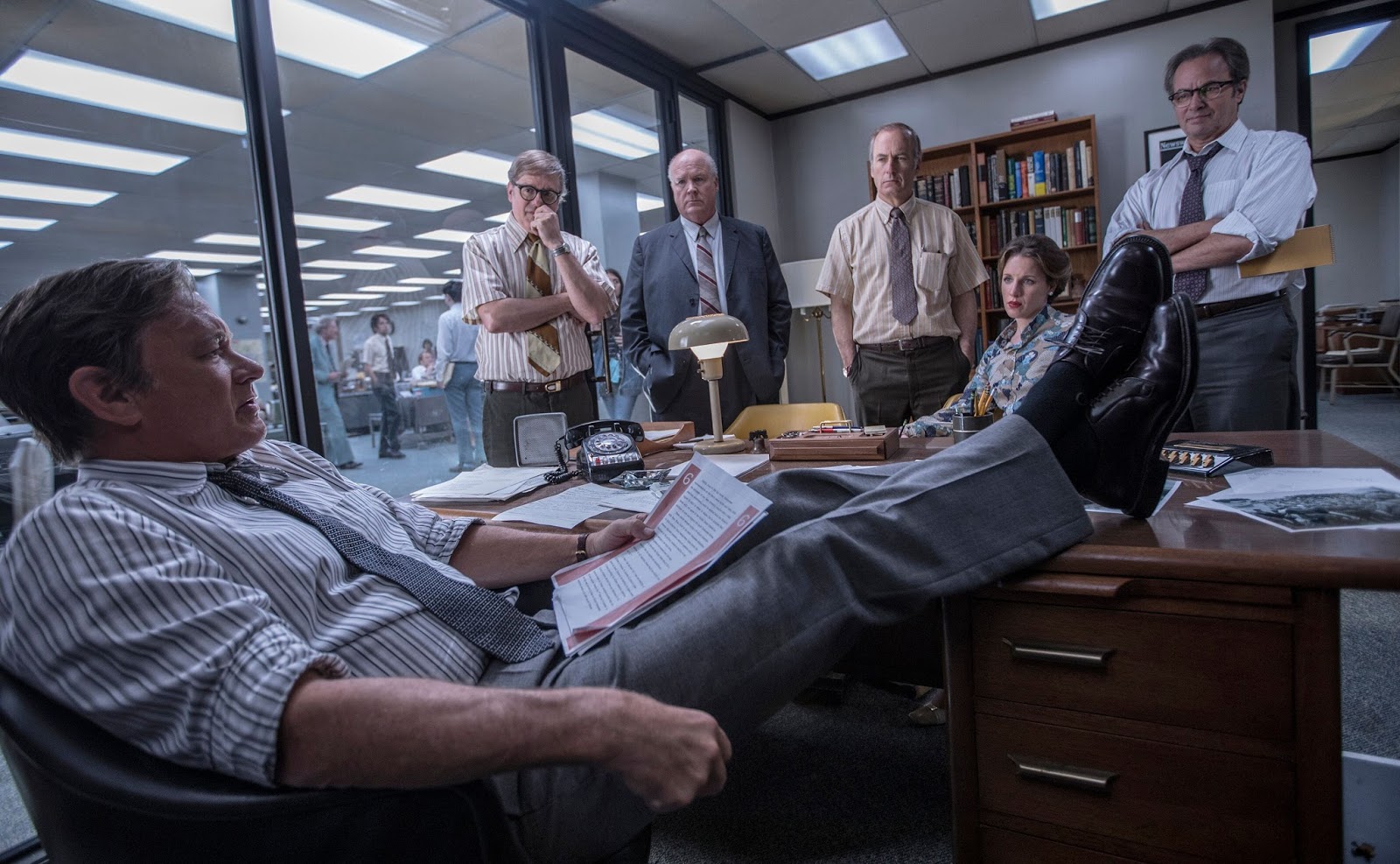 Outro tema que muitas vezes está relacionado a filmes jornalísticos são os escândalos políticos, questão que permeia boa parte, por exemplo, da filmografia do diretor Oliver Stone, de JFK: A Pergunta que não Quer Calar (JFK, 1991) e mais recentemente Snowden: Herói ou Traidor (Snowden, 2016), entre outros. The Post está exatamente neste grupo de filmes. A história trata sobre o vazamento de um volumoso documento do governo norte americano que revelava segredos sobre a forma controversa como, durante quatro diferentes governos, entre 1945 a 1967, os EUA estava levando as questões de seu envolvimento na Guerra do Vietnã. Estes documentos, que ficaram popularmente conhecidos como Pentagon Papers, chegaram, no início da década de 1970, às mãos dos editores dos jornais New York Times e depois Washington Post, este último sendo o principal centro dos acontecimentos do filme.