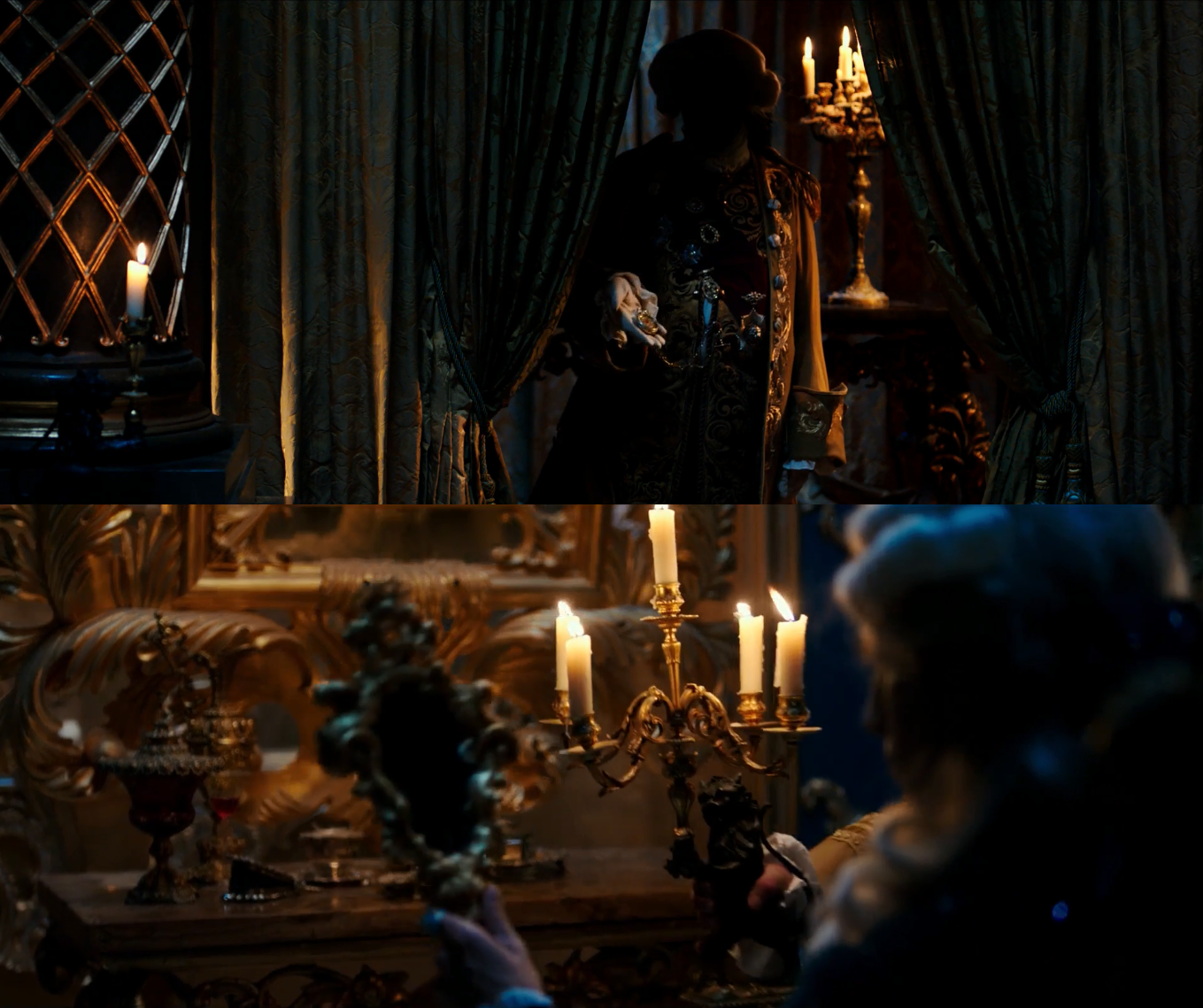 A artificialidade, muitas vezes evidente, dos cenários externos, em nenhum momento chega a ser um incômodo, não apenas por sabermos que se trata de um filme de fantasia, mas pelo excelente trabalho de uma meticulosa direção de arte, que apresenta ambientes, externos ou internos, ricos em detalhes, com uma agradável composição cromática e que parecem interagir com os personagens, seja de uma maneira mais ostensiva, como a deterioração continua do castelo da Fera, que acompanha a de seus habitantes, ou de uma forma mais atenuada, como nas cenas em que a nossa protagonista é introduzida ao público, ou está casualmente observando a Fera de uma das janelas do castelo, por exemplo. Nos últimos dois casos, apesar do forte contraste entre o singelo e o suntuoso das locações, a composição é pensada para valorizar a protagonista, que salta aos olhos, seja pela cor do seu figurino, ou por uma luz que incide na personagem, atribuindo a ela uma atmosfera quase celestial e ressaltando aquilo que todos já sabemos: ela é diferentona. E da melhor maneira possível!